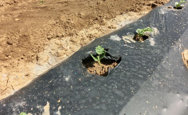 Aufgrund der kühlen Witterung konnten wir unsere Melonen erst Mitte Mai setzen. Melonen mögen warmes Wetter, daher haben wir den Boden mit einer schwarzen Folie abgedeckt, die den Boden schneller und stärker erwärmt...