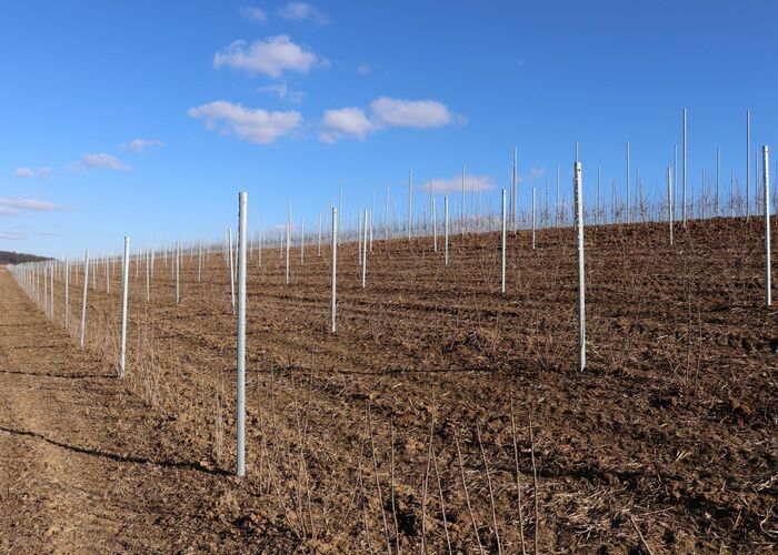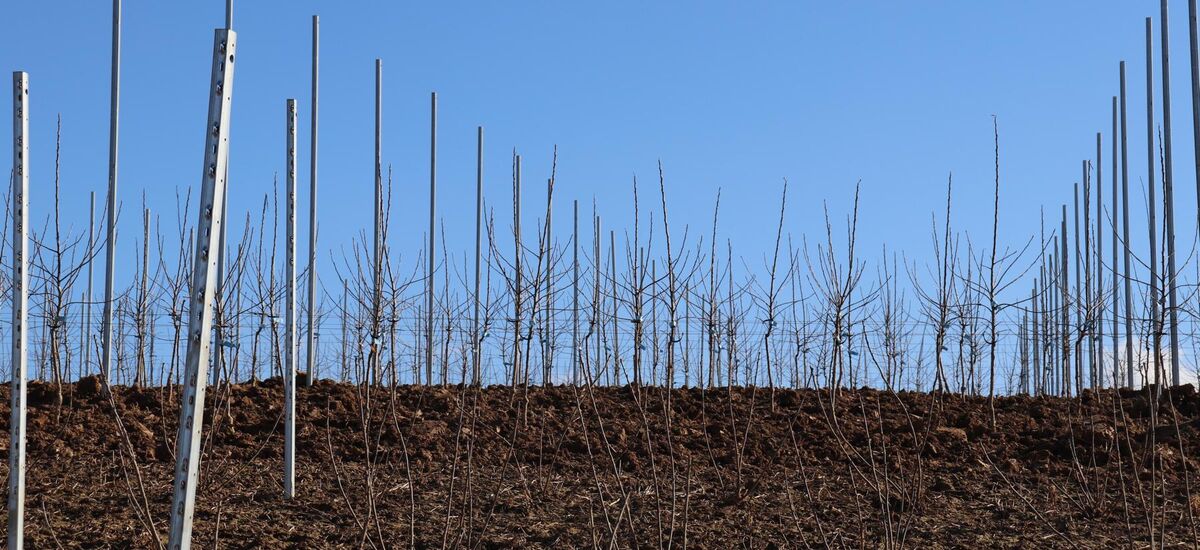 Auch über die Wintermonate waren wir fleißig: Neben des Baumschnitts, haben wir eine neue Obstanlage erstellt. Hier wachsen die Äpfel der Sorten Wellant und Rubinette, sowie rote Johannisbeeren. Die ersten Früchte können wir voraussichtlich 2022 ernten.