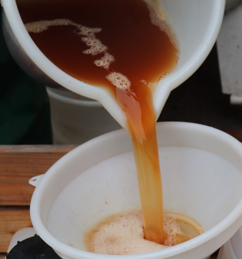 Anschließend werden sie mit einer Obstmühle gemahlen.