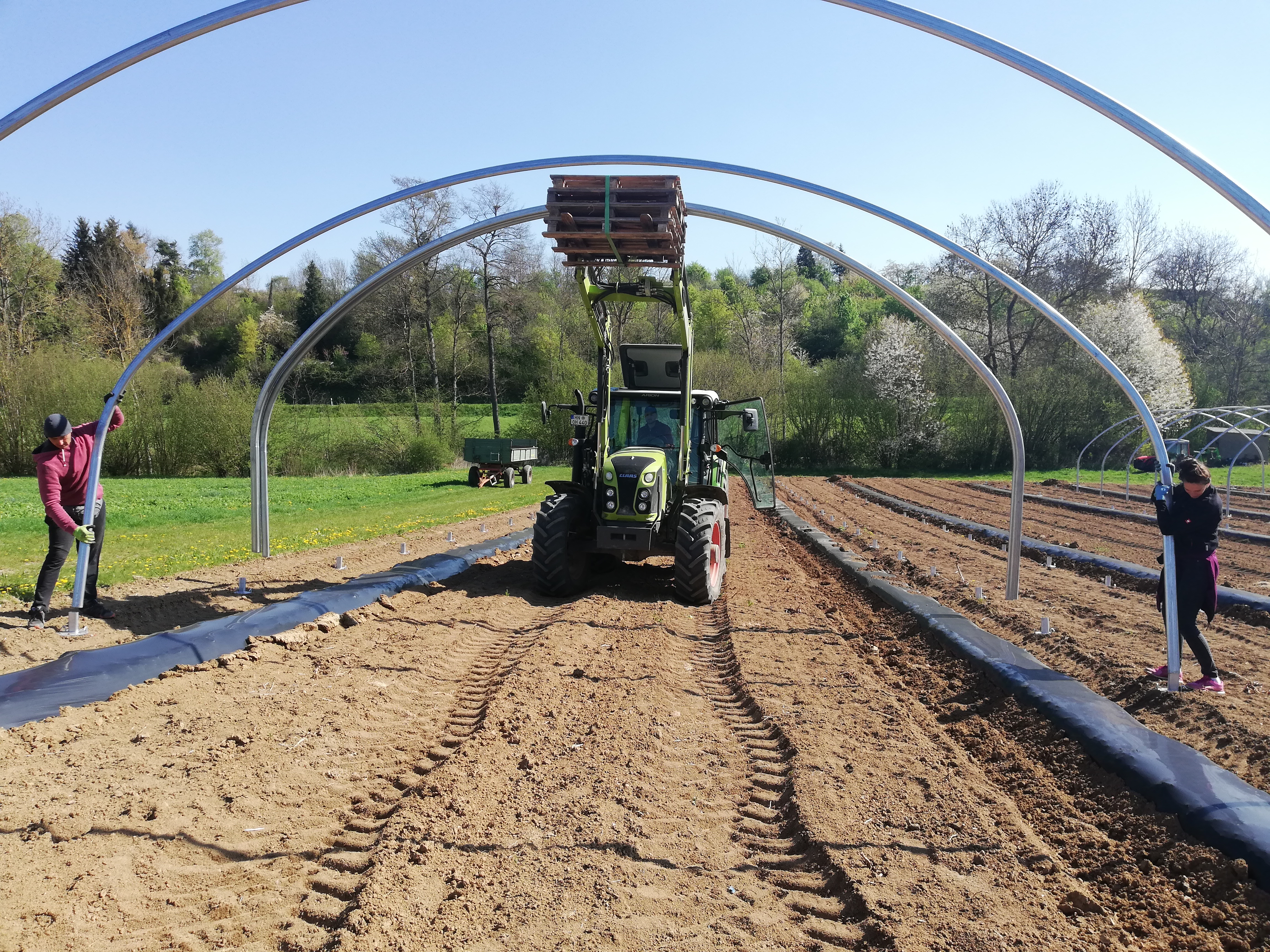 Anschließend wurde die Folie auf die Tunnel gezogen.