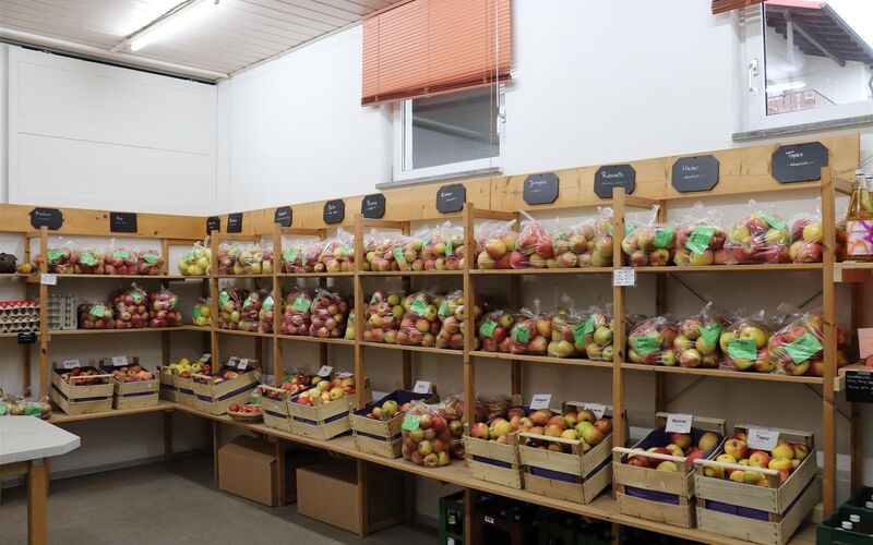 In unserem Hofladen finden Sie trüben und klaren Apfelsaft. Diesen beziehen wir von der Firma Beil, den wir mit unserem Mostobst beliefern. Über die Erntezeit – Mitte September bis Ende Oktober – können Sie frisch gepressten Süßmost (Apfelsaft) in unserem Hofladen kaufen.